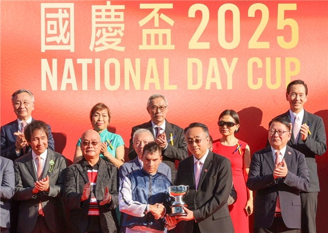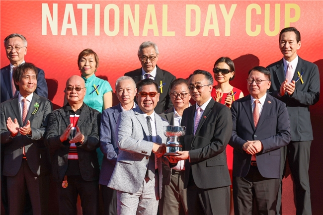 “国庆杯”颁奖仪式上,香港特别行政区政务司司长陈国基,将“国庆杯”的奖杯及银碗颁发予胜出马匹的马主吴鸿有及马主代表。中央人民政府驻香港特别行政区联络办公室宣传文体部副部长李曙光将银碗颁发予胜出练马师叶楚航及骑师巴度。